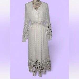NWT White Lace Dress with Long Sleeves and Side Zipper