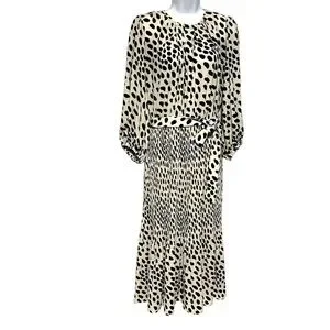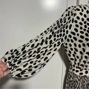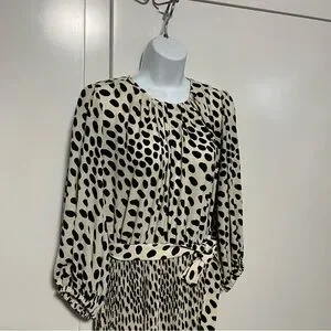 AYR Who's She Hot Dot Midi Dress Size Medium Polka Dot Pleats Elegant Luxury