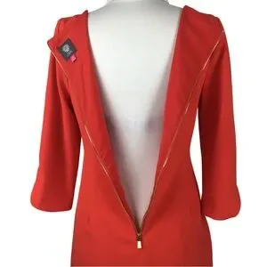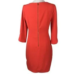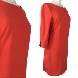 Vince Camuto Gorgeous Tomato Orange 3/4 Sleeve Boatneck Shift Midi / Mini Dress size 10