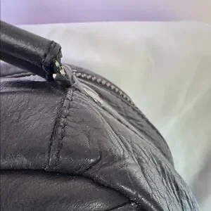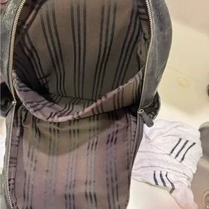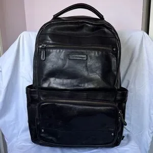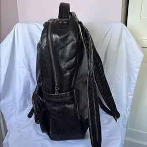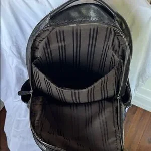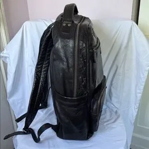 Luxury leather goods maker Frye’s Logan backpack is made of burnished leather for that worn-out look. Includes padded laptop pocket. Minor wear around straps and top handle but otherwise very good condition.