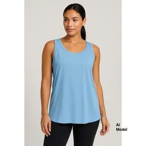 Easy, breezy Alo Yoga athletic tank in a fresh light sky-blue shade. Made from a smooth, lightweight performance fabric that's perfect for workouts, walking, or everyday athleisure. Relaxed, flowy fit with wide shoulders and a scoop neckline – super comfy and great for layering over your favorite sports bra.