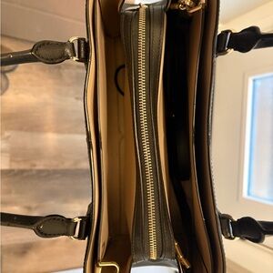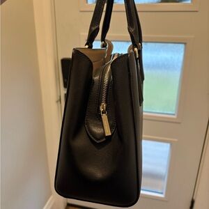 kate spade Black Leather Structured Satchel with Neutral Trim