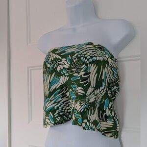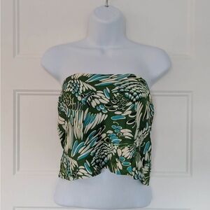Reformation Silk Strapless Top Green Print Bandeau S Anthropologie