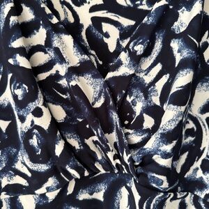 Lauren Ralph Lauren Navy and White Asymmetrical Y2K Patterned Midi Dress