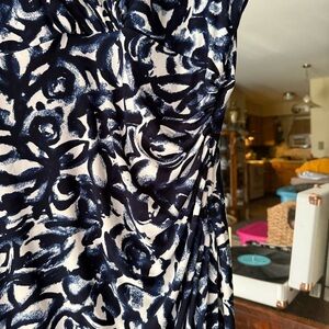 Lauren Ralph Lauren Navy and White Asymmetrical Y2K Patterned Midi Dress - Size 14