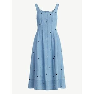 NWT Free Assembly Women's Embroidered Hearts Denim Panel Dress