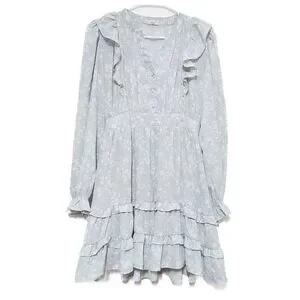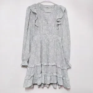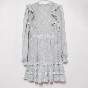 By The River Mint Floral Ruffle Dress Cottagecore Boho Sheer Mini S Spring
