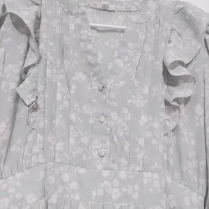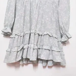 Super dreamy cottagecore / boho piece with soft mint green floral print, tiered ruffle skirt, and feminine flowy silhouette. Lightweight sheer fabric makes it perfect for spring and summer styling.