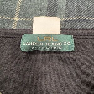 Ralph Lauren long sleeve jacket with plaid pattern. Front panel and cuffs in solid black. Fold-over collar and open front design. Soft knit blend with subtle stretch. Pit to pit measurement is ~19.5”. Excellent pre-owned condition.