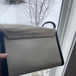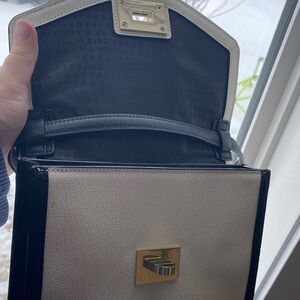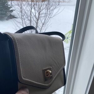 This stylish women's bag is perfect for any occasion. Its sleek design and versatile colors make it a must-have accessory. Can we worn on the shoulder, cross body and as a clutch. Has some wear as shown in pictures and a stain on the outside of purse however flap covers it when closed. Strap excellent condition. Still has a lot of life left.