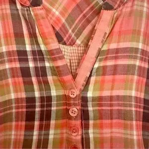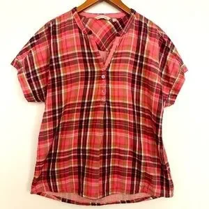 Soft Surroundings Plaid Short Sleeve Top Size Medium