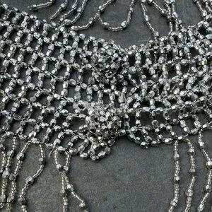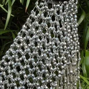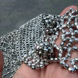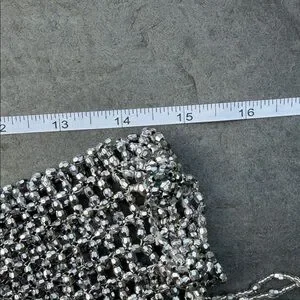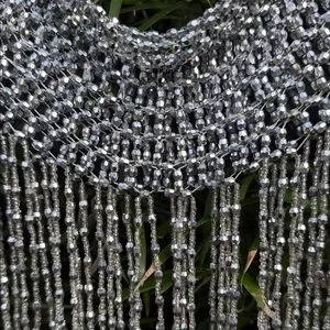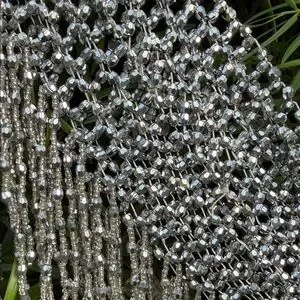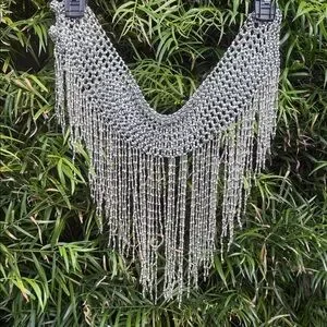 Eye-catching silver fringe belt and/or wrap designed to add fun to any outfit. Features cascading silver beads for dynamic movement and sparkle. Beads are plastic and lightweight.