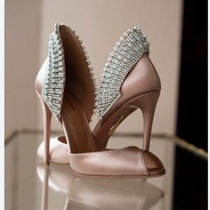 NEW NIB Aquazzura concorde crystal peep Toe Satin Heels