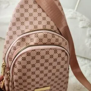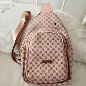 Pink And Brown Patterned Crossbody Sling Bag