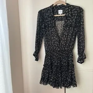 Elevate your wardrobe with the stunning Misa Los Angeles Vittoria mini dress in size medium. This romantic black dress features a delicate ditsy floral print throughout, creating an effortlessly feminine aesthetic perfect for any occasion.