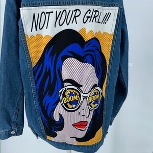 Shein Jean Jacket Denim Size L Not Your Girl Boom Boom Comic Pop Cotton/Poly