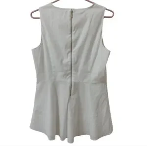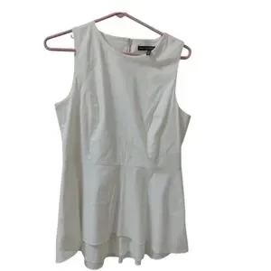 White House Black Market elegant sleeveless blouse size 10 features a chic asymmetrical peplum design, offering a sophisticated silhouette. Crafted in a crisp white hue, it embodies a timeless style perfect for both formal and casual occasions.