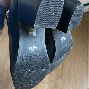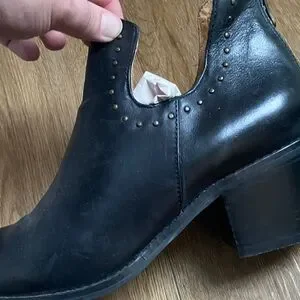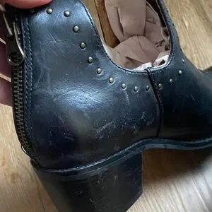 Step out in style with these chic black ankle boots. Perfect for any occasion, they offer both comfort and elegance. Some wear as shown in pictures. Have not tried to remove scuffs. They still have lots of life left.