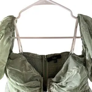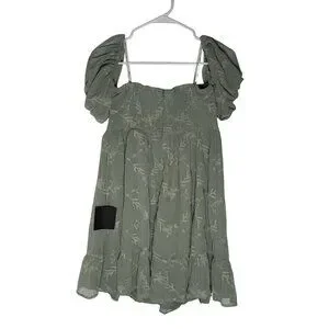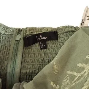 Lulus Cutest Icon Sage Green Embroidered Off-the-Shoulder Mini Dress Size Lg NWT
