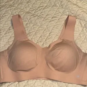 There is some minor discoloration in the pits due to wearing under dark clothes; possibly able to come out with deep scrubbing but unsure. Also a couple of small black marks on back right. The bra is in otherwise great condition, but due to these imperfections, pricing lower. Very comfortable, just too big for me now. Please make me an offer!