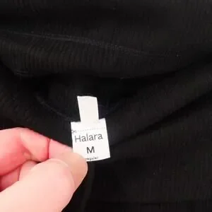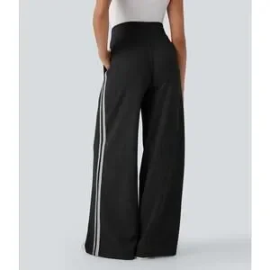 NEW Halara Women's Medium Ribbed High Waisted Tummy Control Wide Leg Pants Black