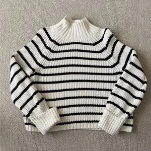 Abercrombie & Fitch Black and Cream Striped Turtleneck Sweater