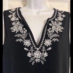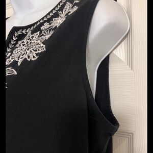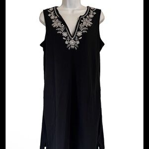 LANDS END WOMEN SIZE M COTTON BLEND BLACK WHITE EMBROIDERED FLORAL SHIFT DRESS