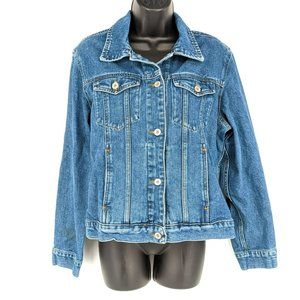 Eddie Bauer Jean Jacket M Medium Wash Button Down Denim Blue Classic 100% Cotton