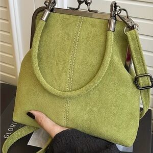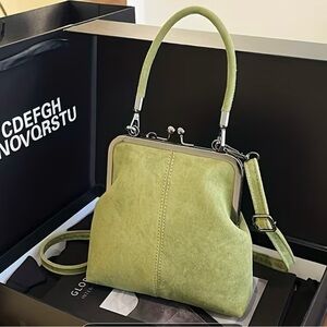 This stylish green suede handbag is perfect for any occasion. Its elegant design and vibrant color make it a must-have accessory.