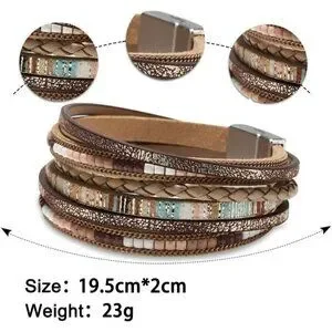 Boho Leather Wrap Bracelet for Women - Multi-Layer Crystal Beads & Leopard Cuff