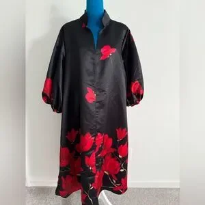 Elegant black dress featuring vibrant red floral patterns. Perfect for any occasion.2x size length 46.9,bust 51.6