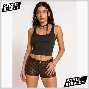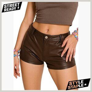 Faux Leather Micro Shorts Low Rise Mini Rave Festival Club Outfit