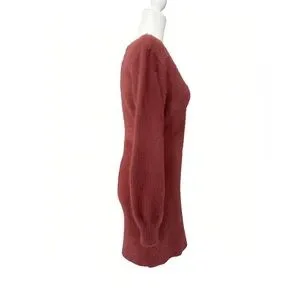 Lulus What A Flirt Rose Pink Eyelash Knit Sweater Dress Size S Balloon Sleeve Mini Bodycon
