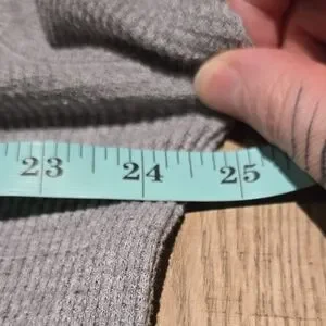 A soft gray ribbed cropped cardigan with front button closures. Lightweight knit that layers easily and offers a flattering fitted silhouette. Versatile for casual or dressed-up looks. Includes long sleeves and a crew neckline.
