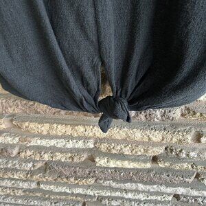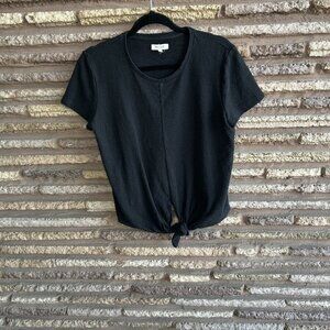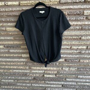 Madewell Black Cropped Tie Front Short Sleeve Tee 100% Cotton Size Medium