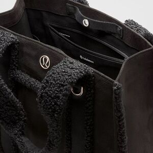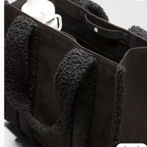 Lululemon Boxy Tote (full size) in black with faux shearling trim