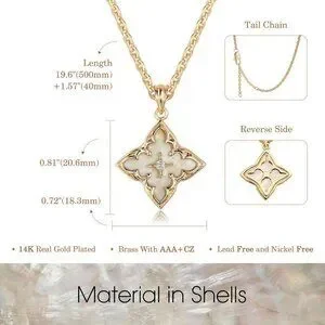 Necklace Size: Clover pendant: 0.72'' x 0.81''. Chain length: 17.6"+1.57" extender (50cm+4cm). This charm gold neckalce for women is the perfect addition to your jewelry box, suitable for wear as everyday jewelry and combined layered with other necklaces