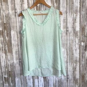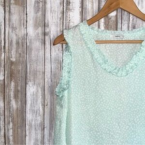 Jodifl Mint Polka Dot Ruffle Edge High Low Blouse Women’s