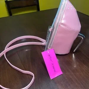 Betsey Johnson Kitch Iron bag NWT Pink Patent Crossbody Bag with Silver Chain