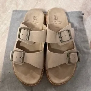 Brunello Cucinelli Taupe Double Buckle Sandals