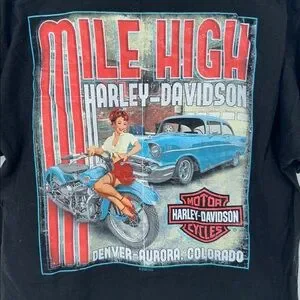 • Back graphic: Mile High Harley-Davidson pin-up motorcycle art