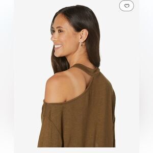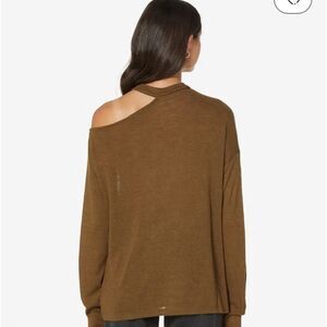 Asymmetrical neckline with a cold shoulder.