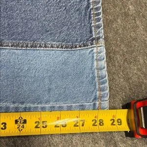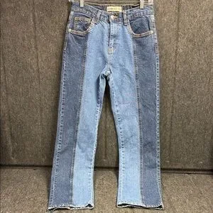 Stylish two-tone straight leg jeans perfect for any casual outing. Features a unique design for a modern look.