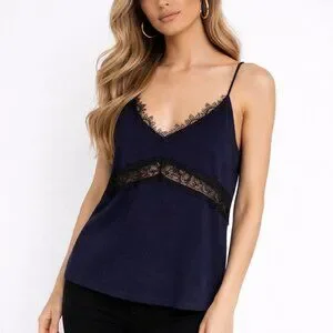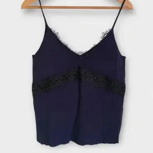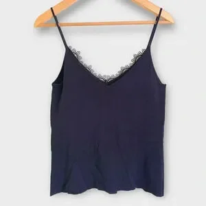 Zara Navy Blue Lace Trim Cami Camisole Tank Top Sz S