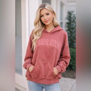 Spiritual Gangster “Carpe Diem” Hoodie Sweatshirt Dusty Rose Pink Size Small