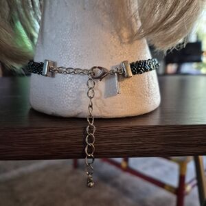 Iridescent beaded choker with a woven design. The necklace features shimmering green and multicolor beads for a striking look. Lightweight and comfortable for everyday or evening wear.