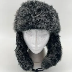 Faux Fur Leather Aviator Hat in Black Winter Gear Warm Trapper