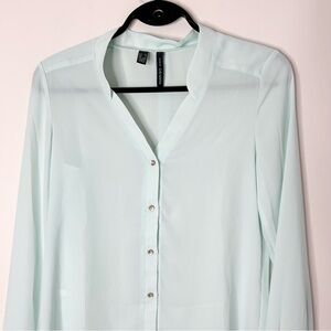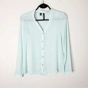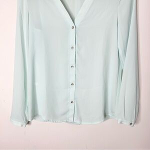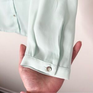 MANGO Button Down Shirt Blouse Sheer Crepe Long sleeve Mint green size XS