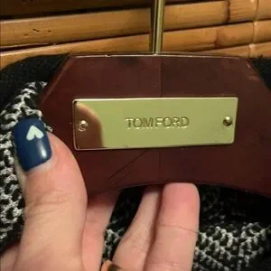 Excellent Tom Ford Black and White Chevron Cashmere & leather Sweater size XS