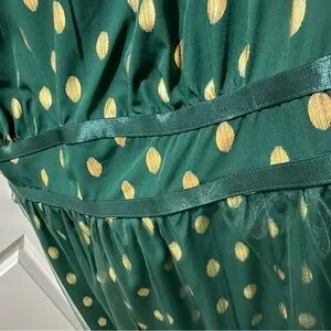 BloomChic Emerald Green Midi Dress with Gold Dot Print